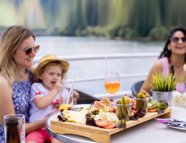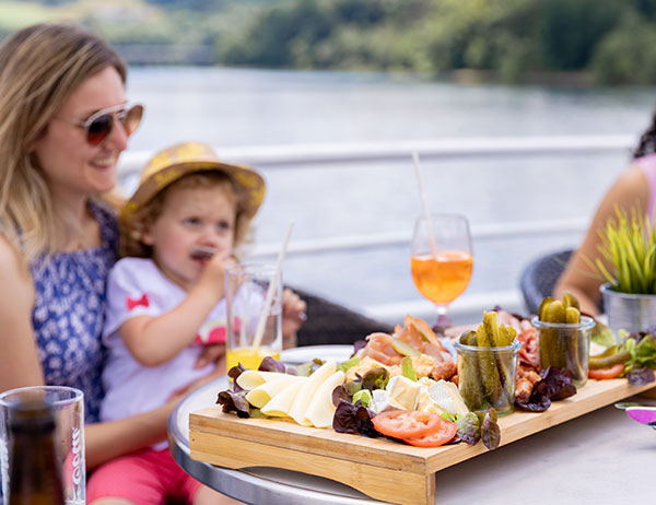An Bord erwartet Sie ein vielfältiges Angebot: von informativen Kommentaren über die Region bis hin zu kulinarischen Köstlichkeiten. Während Sie sich auf dem Sonnendeck entspannen oder im Panoramaraum die Aussicht genießen, erfahren Sie Wissenswertes über die Geschichte des Biggesees und seiner Umgebung.