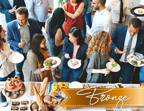Catering: Reichhaltiges Buffet mit Vorspeise, Hauptgang und Dessert. Wählen Sie aus unseren Menü-Vorschlägen.